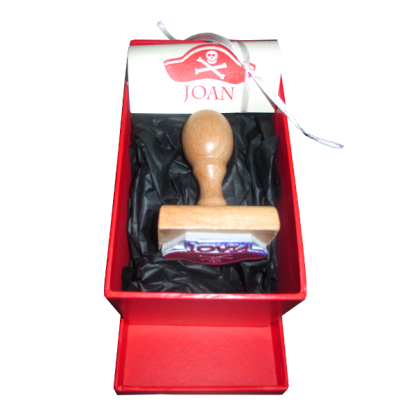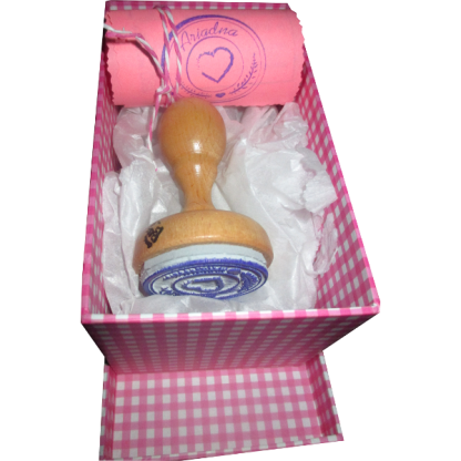 Caja regalo con sello personalizado para marcaje de objetos personales.